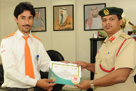 Omar Khan was awarded a certificate of appreciation by the Dubai Police after returning 123,700 Saudi Riyals and gold jewellery found in his taxi