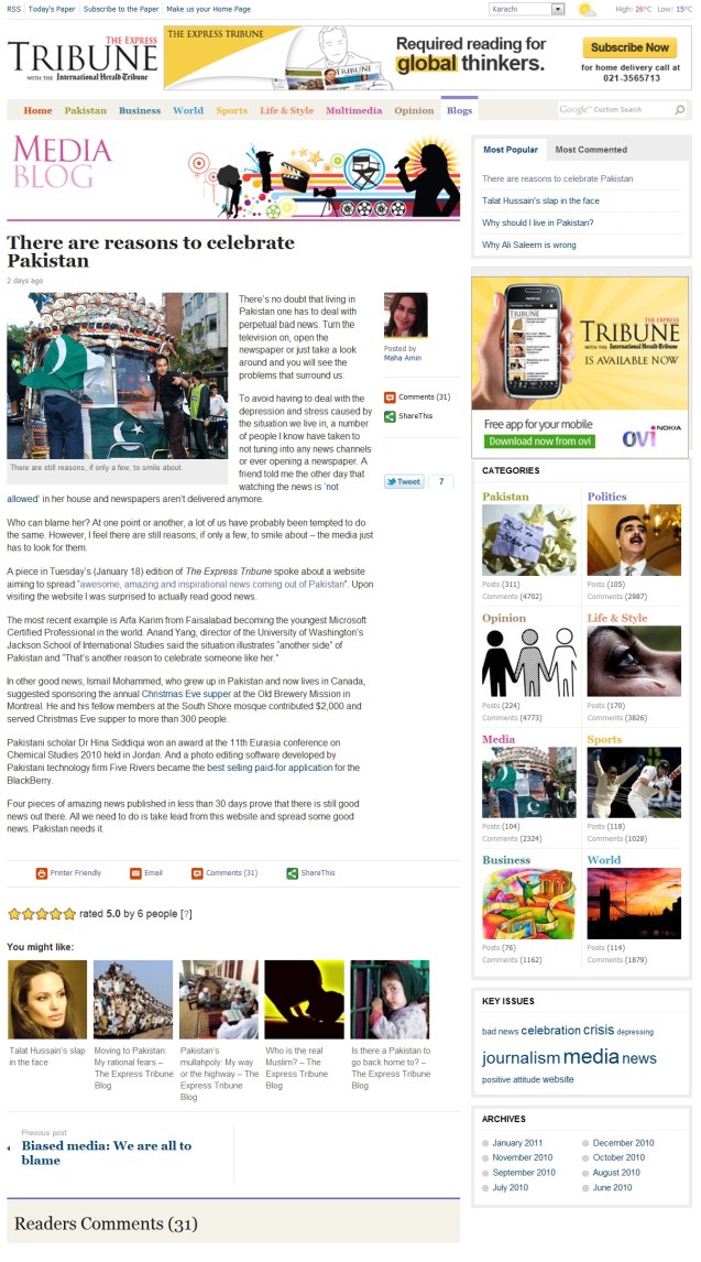January 20th 2011, The Express Tribune Blog (Media)
