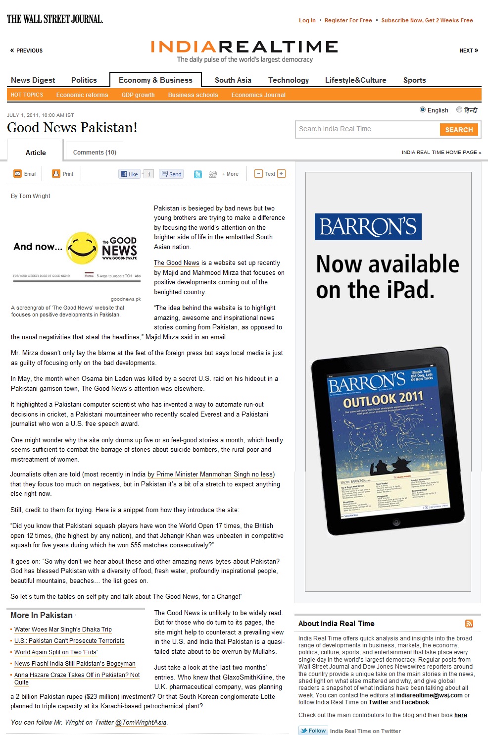 http://blogs.wsj.com/indiarealtime/2011/07/01/good-news-pakistan/